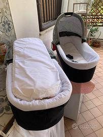 Vendo in ottimo stato carrozzina/passeggino genellare, carrozzine praticamente nuove, con cuscini anti soffocamento mai usati, passeggino con zanzariera, cerata antipioggia e copri maniglie sedute in stoffa o simil pelle, tutto originale!