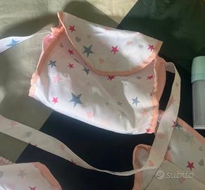 Carrozzina giocattolo della Marca, coccole e baci usata pochissimo. Non trasformabile in passeggino, è solo carrozzina con navicella estraibile, cappottina, borsa per gli accessori e porta tutto sotto la navicella. Altezza dal manico a terra più o meno 65 cm.