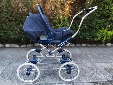 Trio Inglesina modello Vittoria, formato da carrozzina, passeggino e ovetto con base isofix oer auto. Colore bianco e blu ,usato poco in ottime condizioni .