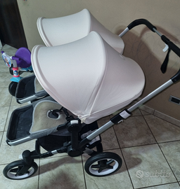 Carrozzina passeggino bogaboo donkey 3 gemellare con la possibilità di mettere le carrozzine o i passeggini insieme o alternati,compresi di borsa da applicare quando si usa singolo e con il riduttore per gli ovetti cibex in regalo,gli ovetti sono compresi nel prezzo.quindi passeggino gemellare piu 2 ovetti piu riduttore per ovetti