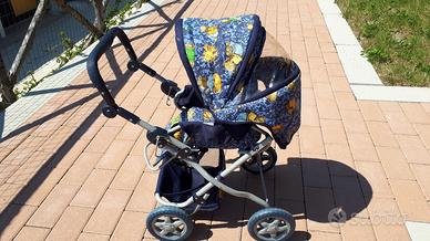Maniglione regolabile in altezza, ruote grandi, sospensioni, pianale regolabile in diverse posizioni, tettuccio regolabile con una parte trasparente, richiudibile.