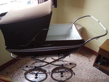 Vendo splendide carrozzine vintage. Una viola in perfette condizioni completa di beuty e copertura bimbo,e un altra marrone. La culla si può staccare dal carrello, struttura in metallo,ruote con freni. Perfette.