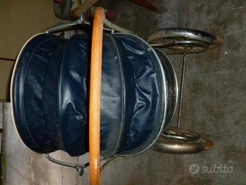 carrozzina vintage Giordani,modello isabella, blu, anni ’50 ’60, neonati. ! usata da pulire .