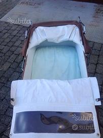 Vendo bellissima carrozzina vintage della nonna anni 60 in tessuto marrone, richiudibile e staccabile da supporto con ruote metallico per il viaggio in auto, con freno, maniglie per il trasporto. La carrozzina è girevole fronte mamma o fronte marcia. In buono stato considerando gli anni che ha. Solo da lucidare base Metallica con ruote o da tenere così.