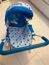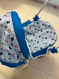 Carrozzino ciccio bello blu con 4 ruote, cappotta, copertina, sacca porta oggetti