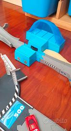 La pista più grande di Cars, con caricatore motorizzato. È compatibile con tutte le auto di Cars. 77x60 cm