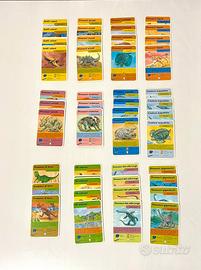90 carte dei dinosauri, formate da 45 coppie per giocare a memory, 12 gruppi con caratteristiche simili. Ogni carta fornisce informazioni sul dinosauro. Si possono inventare diversi giochi. Le carte sono usate ma sono un buono stato.