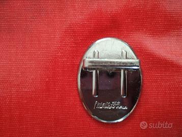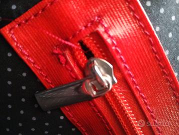 meravigliosa ed elegante cartella in stile vintage della Minisèri. colore rosso, con scritta frontale bianco-nera in cornice marrone. interni neri a pois bianchi. logo su chiusure e parte posteriore. completa di cinta, chiusura a due ganci e con 3 tasche interne di cui una con cerniera. creazione e design francese. ottime rifiniture e molto robusta. misure 34x28 cm. lo zaino è in ottime condizioni, solo la parte interna evidenzia qualche alone nero fortunatamente non visibile esternamente. il prezzo finale comunque tiene conto anche di questo piccolo difetto.