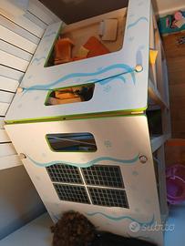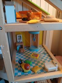 Vendo casa da bambole marca HAPE in legno con mobili, accessori e scale amovibili e con tetto delle diverse stagioni. Misure (cm): altezza 74, larghezza 60, profondità 31.