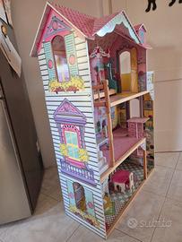 KidKraft Casa delle Bambole in Legno Annabelle con Accessori e Mobili inclusi, Casa a 3 Livelli di Gioco con Ascensore per Bambole 30cm, Giocattolo per Bambini 3+ Anni