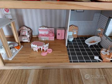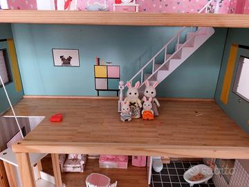 Bellissima casetta delle bambole in legno in parte arredata e con la famiglia coniglietti inclusa con servizio ascensore annesso. Praticamente mai usata.