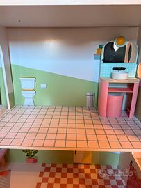 Casa delle bambole in legno liddl con accessori usata pochissimo a qualche difetto come l’ammaccatura in fondo ( vedi foto) altezza piu o meno 110 cm larghezza piu o meno 90 cm