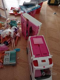 Vendo casa delle Barbie con relativi accessori, in più compreso c'è autoambulanza, camper alcune Barbie con la cabina armadio e Barbie pasticceria.anche qualche pezzo della veterinaria.