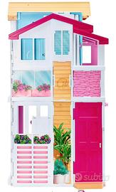 Vendo casa Barbie tre piani. come da foto completa di accessori. La casa è richiudibile e occupa meno spazio una volta chiusa, si trova in ottime condizioni come nuova.