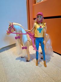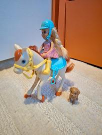 casa delle barbie portatile con 3 barbie, 4 cavalli e rispettivi accessori