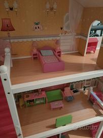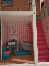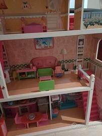 vendo casa delle Barbie in legno, alta 110cmx81cm profondità 33cm. Completa di mobili e accessori vari . Non spedisco ma consegno a mano in zona Bassano e borgo Valsugana.