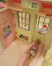 casa vintage da chiusa diventa una valigetta,la Barbie e inclusa ,unica cosa che ha e che si è staccato il pezzo dal pavimento come come si vede ne la foto con Barbie in piedi ,non riesco ad incastrlo .