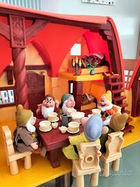 Stupenda ed ottimamente tenuta casa di biancaneve ed i sette nani, con tutti gli accessori come da foto, tavolo, sedie, nani, letti, accessori cucina. Apribile, con dimensioni da chiusa di circa 60x40x40 h.