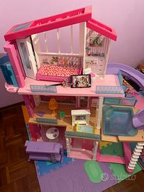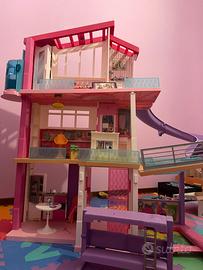 Vendo a causa inutilizzo la Casa dei sogni di Barbie.La metà della casa è già montata per evitare varie rotture.In ottime condizioni,usata pochissimo. Per correttezza vorrei precisare che nel smontaggio si è spazzato un piccolo pezzo in qui ho messo la foto. In omaggio metto una bellissima macchina La 500 della Barbie.