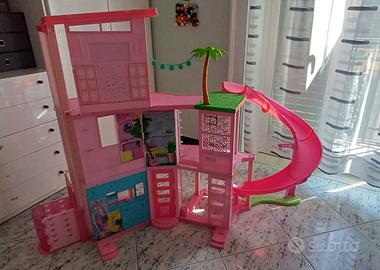 Casa delle bambole Barbie di grandi dimensioni, a più piani, con dettagli colorati e accessoriati.
