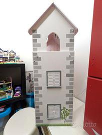 Casa delle Bambole in Legno con Terrazza, scala interna e ascensore completa di mobili/accessori.