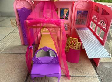 Voglia di un tocco di magia? Questa fantastica casa delle barbie non è solo una casa, ma una valigetta portatile! E’ perfetta per chi vuole giocare in compagnia con le amiche e si può facilmente trasportare grazie ad una maniglia presente in cima. Nella stanza principale salta subito all’occhio un bellissimo letto a baldacchino con delle tende rosa. Inoltre, e’ presente un’altro letto a destra che si trasforma in una vasca da bagno, offrendo due scenari di gioco in uno. Include un armadio, un tavolino da notte con lampada e una scaletta con finiture dorate.Sulla parete sono appesi quadri, tra cui un ritratto di Ken, che rendono l'ambiente ancora più accogliente.