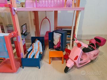Casa della Barbie completa di extra, tra cui la bellissima vespa della Barbie.