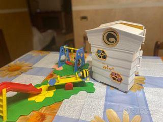 Fai visita a Buzzbee e ai suoi amici, raccogli il polline e produci il miele. Fai scivolare i personaggi sul Binario Volante, Sbircia dalle finestre e vedrai i fiori che crescono nei vasi. Tutti i Personaggi Sono Compatibili con gli Altri SET. il playset si apre su 4 lati i personaggi possono impugnare gli oggetti con le loro manine. La casina €2 5,00 + Altalena €10,00+ Parco giochi € 5,00. Tutto insieme €30,00 pagamento contanti o paypal. Possibile vederli zona Roma Sud Trigoria