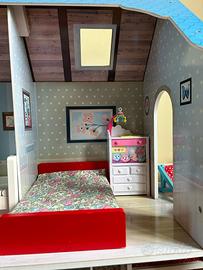 Casa delle bambole 70 euro. Interessante opportunità Acquistata a 178,00 € ed è completa degli accessori mostrati in foto. Inoltre il modello è fuori produzione. La casa comprende: ✓ Struttura con 6 stanze, 1 balcone, 6 finestre, 2 lucernari ✓ Arredo originale completo in ogni stanza (letto matrimoniale, letto a castello, armadio con 3 grucce, scrivania, sedia scrivania, divano, poltrona tavolino salotto, lume, mobile lavanderia, cesta panni sporchi, lavatrice, tavolo e sdraio da balcone) ✓ Cucina completa di accessori, con sportellini e cassetti apribili, pensili con ripiani, completa di elettrodomestici, tavolo e 2 sedie ✓ Caratteristiche Tecniche MATERIALI DELLA CASA fibra di legno e materie plastiche DIMENSIONI 116 x 86 x 36 cm Note Condizioni Usata La struttura è in ottime condizioni. I personaggi, alcuni arredi e alcuni accessori mostrano alcuni segni di usura. NON SPEDISCO - RITIRO SU ROMA