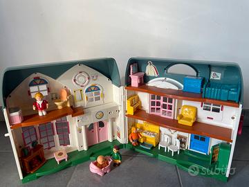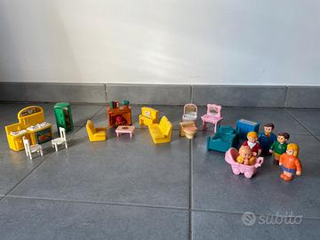 Accessori presenti: 5 personaggi, una carrozzina, un letto e un comodino, un water, un lavandino, una toeletta, un forno con piano cottura, un frigorifero, due sedie, un tavolino, un camino, un pianoforte, una poltrona e un sofà.