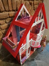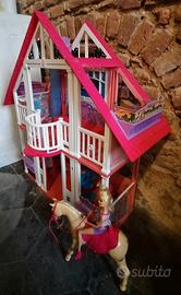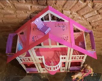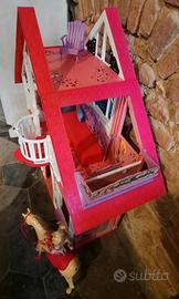Casa delle Barbie "Malibu'", con ascensore, mobili del bagno, salotto, camera da letto, cucina e terrazzo. Alta 90 cm, larga 85 cm, profonda 30 cm. Ottime condizioni. N.B.: Barbie e cavallo NON COMPRESI nella presente offerta, ma vendibili separatamente.