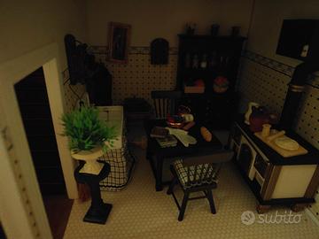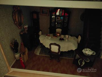 completa di accessori e bambole originali in porcellana solo due mobili vasca incollata e lavandino.da incollare un pezzetto poi completa solo consegnata a mano