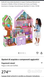 Come da totolo vendo casa delle bambole giganete misure H 150 L 142 costo su amazon €274,99 come evidenziato in foto vendo a 190 completa di accessori consiglio per chi la compra di smontarla per poi facilitare il rimontaggio