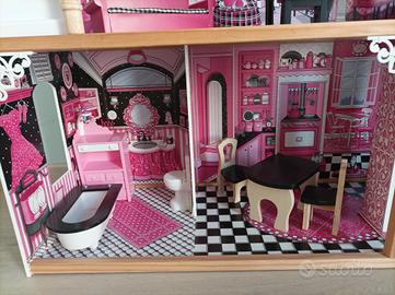 Vendesi bellissima casa delle bambole firmata KidKraft, nota per la qualità e la robustezza dei suoi giocattoli in legno. La casa è in ottime condizioni, già completamente montata (risparmiandovi ore di faticoso lavoro!) e pronta per far sognare un’altra bambina o bambino. La struttura è imponente e ricca di dettagli su tre piani: Dimensioni: Altezza 121 cm | Larghezza 84 cm | Profondità 40 cm. Ascensore manuale: Un divertente ascensore che collega il primo e il secondo piano, azionabile a mano. Design: Pareti decorate con grafiche curate e colorate in ogni stanza. Accessori Inclusi: La casa viene venduta completa di tutto l’arredamento visibile in foto (13 pezzi): Zona Notte: Letto e lampada a colonna e comodino. Bagno: Vasca da bagno, gabinetto. Salone/Musica: Sofà, pianoforte con relativo sgabello e lampadario chic. Cucina/Pranzo: Tavolo con 2 sedie. Extra: ombrellone per il balcone. Consegna Solo ritiro a mano a Cancelli o posso portarla io a Reggello (FI) e frazioni vicine. Non si effettua spedizione date le dimensioni generose e la struttura già montata.