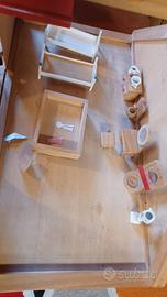 tutta in legno anche gli accessori che si possono spostare a piacimento.