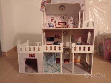 vendo casa delle bambole che si illumina in legno con altezza 90 cm su 3 livelli più garage