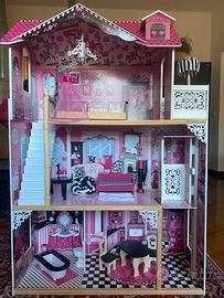 Casa delle bambole in legno su 3 piani, completa di mobili e accessori. Ottime condizioni, stabile e curata nei dettagli, perfetta per il gioco creativo.