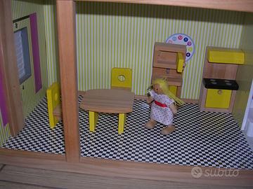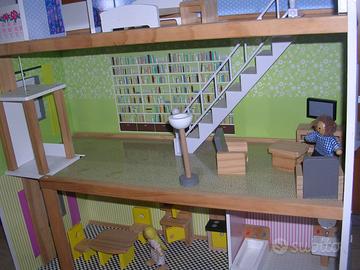 Casa delle bambole KidKraft in legno con ascensore - Misure 61x31x80h cm - 3 piani - buone condizioni - mobili e personaggi in legno come da foto. Rif. Luca tel. 349 6471006
