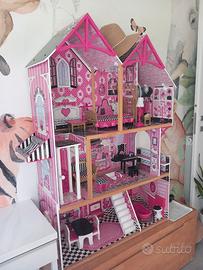 Casa delle bambole KidKraft modello Belle. È alta 1,2 metri e presenta tre piani, cinque stanze e un balcone al secondo piano.