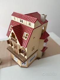 Dispone di porte e finestre apribili, balconcino, tetto rosso e dettagli realistici.