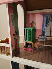 Vendo causa inutilizzo, casetta per bambole in buone condizioni, alta 115 cm circa e lunga 80 cm. Completa di accessori.