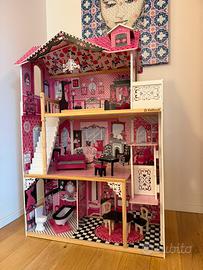 Casa delle bambole Amelia KidKraft dal moderno design in nero e rosa per giocare con stile e allegria. Alta circa 1,2 m e con tre piani, la casa è grande abbastanza per consentire a più bambini di giocare insieme