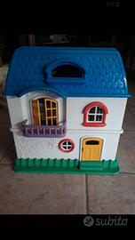 Casa delle bambole con personaggi e alcuni pezzi di arredamento