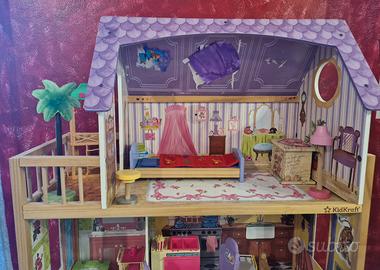 Casa delle bambole per bambina con diversi accessori. Tutta in legno.