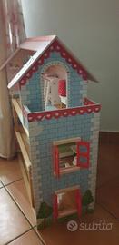 casa delle bambole con accessori in legno