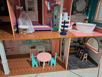 Vendo casa delle bambole completa di arredi, altezza 125 cm, larghezza 111 cm profondità 30 cm
