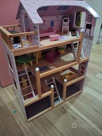 Casa delle Bambole per bambini 3+ anni in legno di pino e MDF a 4 piani, tosa, 60x30x80cm (cucina, bagno, camera da letto e balcone)