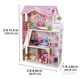 Buona idea per un regalo! KidKraft "Annabelle" casa delle bambole in legno con accessori e mobili inclusi, Casetta da gioco a 3 Livelli con Ascensore.