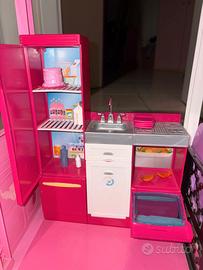 Casa delle Barbie tenuta bene, insieme a degli accessori