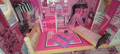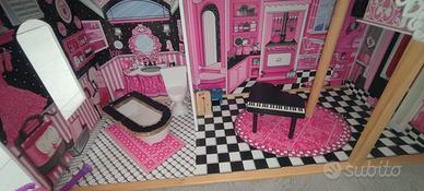 Questa bellissima casa dalle dimensioni di 82 x 33 x H118 cm è realizzata interamente in legno è fornita di tetto, ascensore, scale e di ben 3 piani.